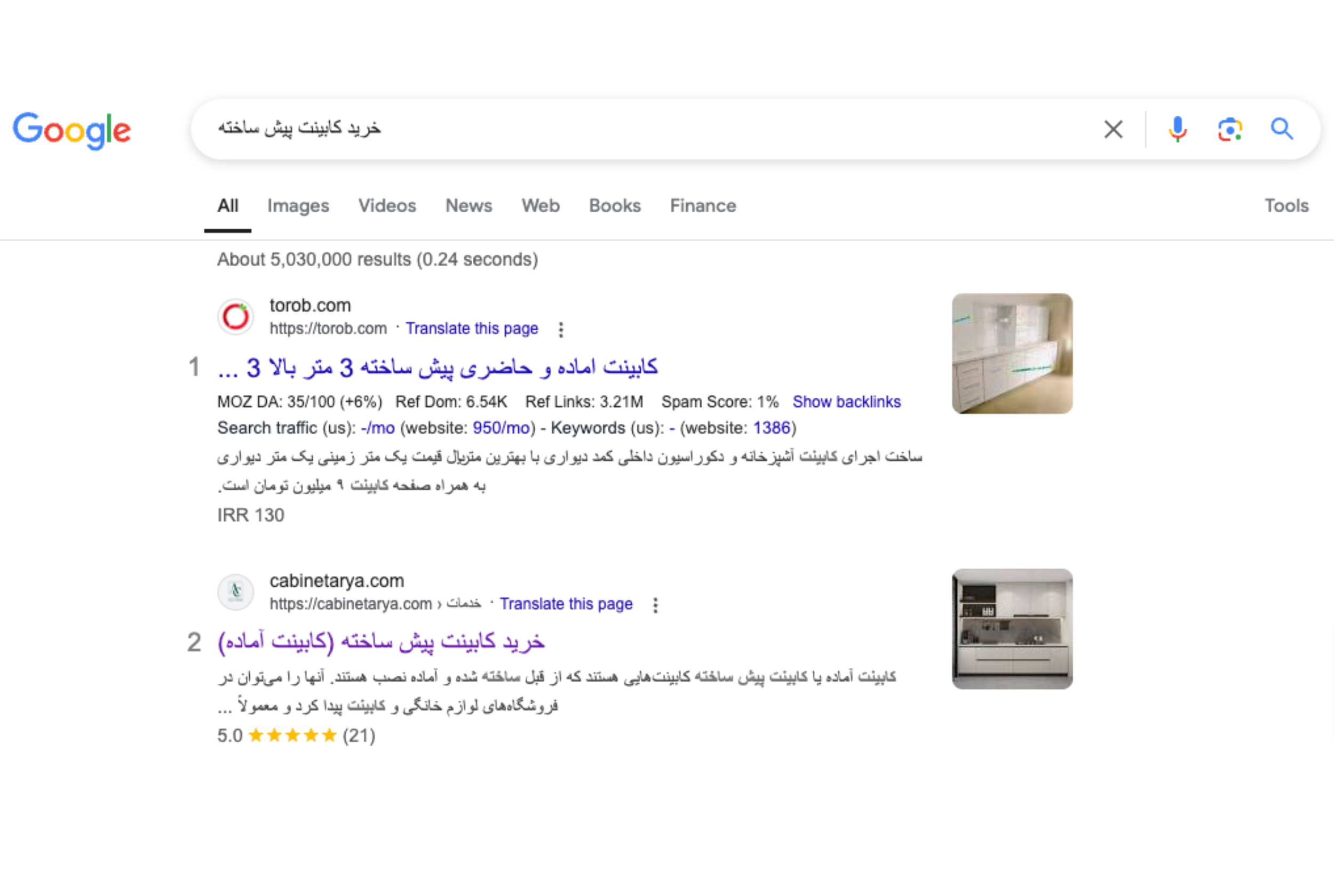 پروژه “کابیت آریا” یکی از نمونه‌کارهای موفق ما در صنعت دکوراسیون داخلی است. در این پروژه که طی ۹ ماه اجرا شد، هدف اصلی بهینه‌سازی سایت برای کلمات کلیدی کلیدی مانند “خرید تی وی وال” و “کابینت پیش ساخته” بود. توانستیم کلمه کلیدی “کابینت پیش ساخته” را به لینک ۲ و “خرید تی وی وال” را به لینک ۵ گوگل برسانیم. این پیشرفت موجب افزایش چشمگیر بازدید و درخواست‌های خرید آنلاین برای سایت شد. برای مشاهده جزئیات پروژه و خدمات این برند، به سایت cabinetarya.com مراجعه کنید.